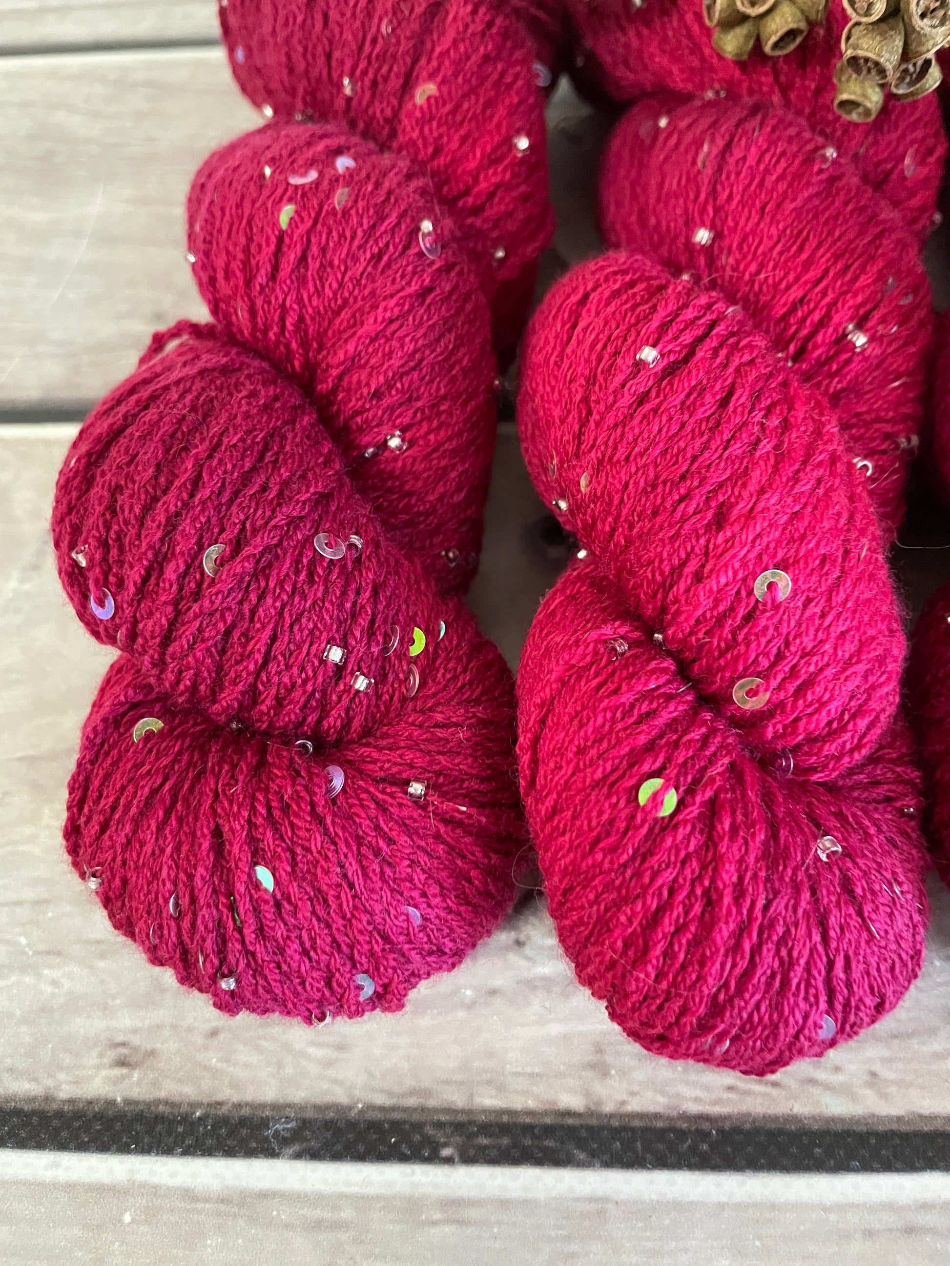 Yuja is a joyful and festive yarn, full of warmth and sparkle. Spun from soft superwash merino and lightly threaded with beads and sequins, it’s designed to bring a touch of celebration to your knitting. The base is smooth and supple, allowing the shimmer to catch the light without overpowering the fabric.