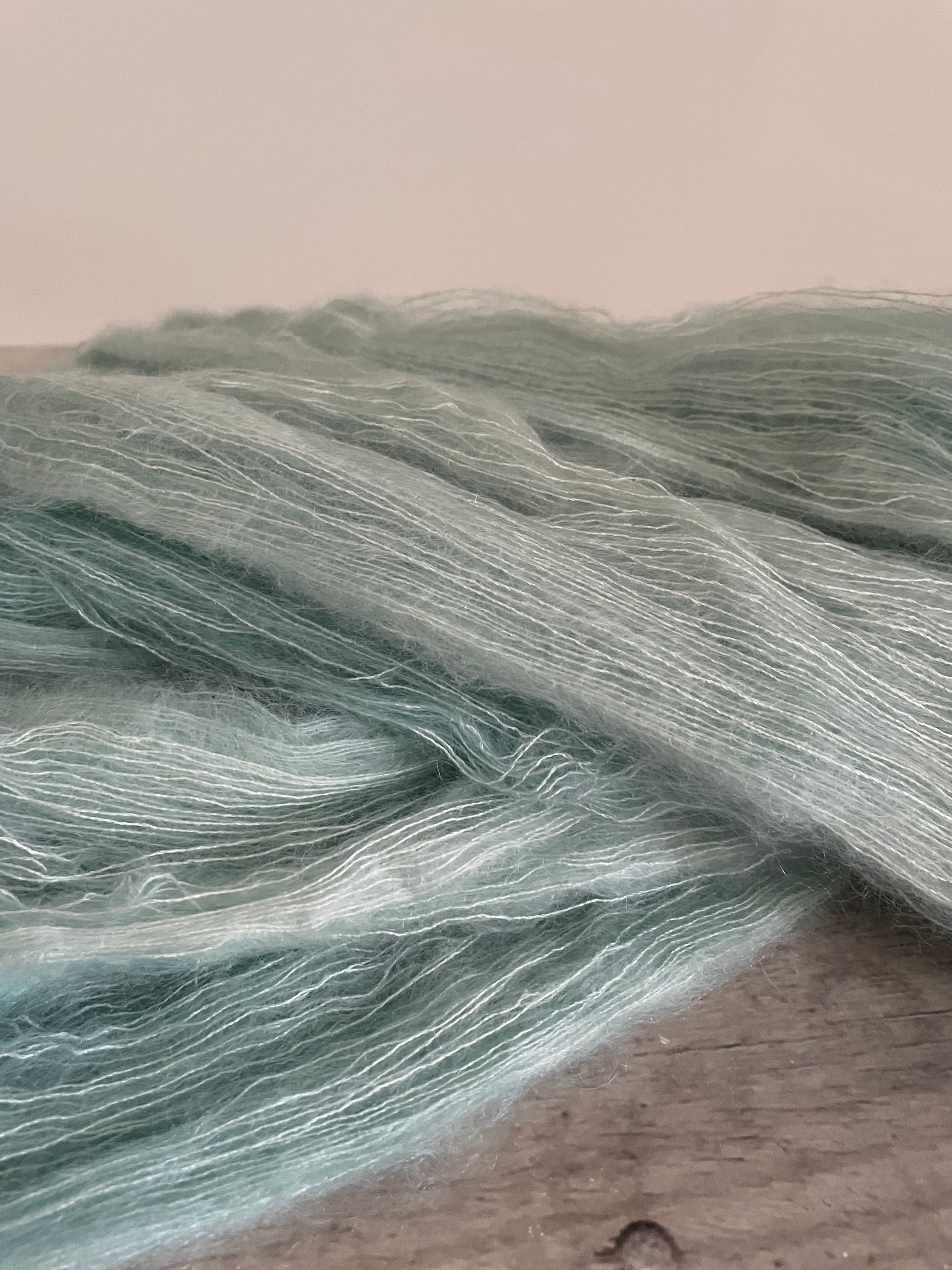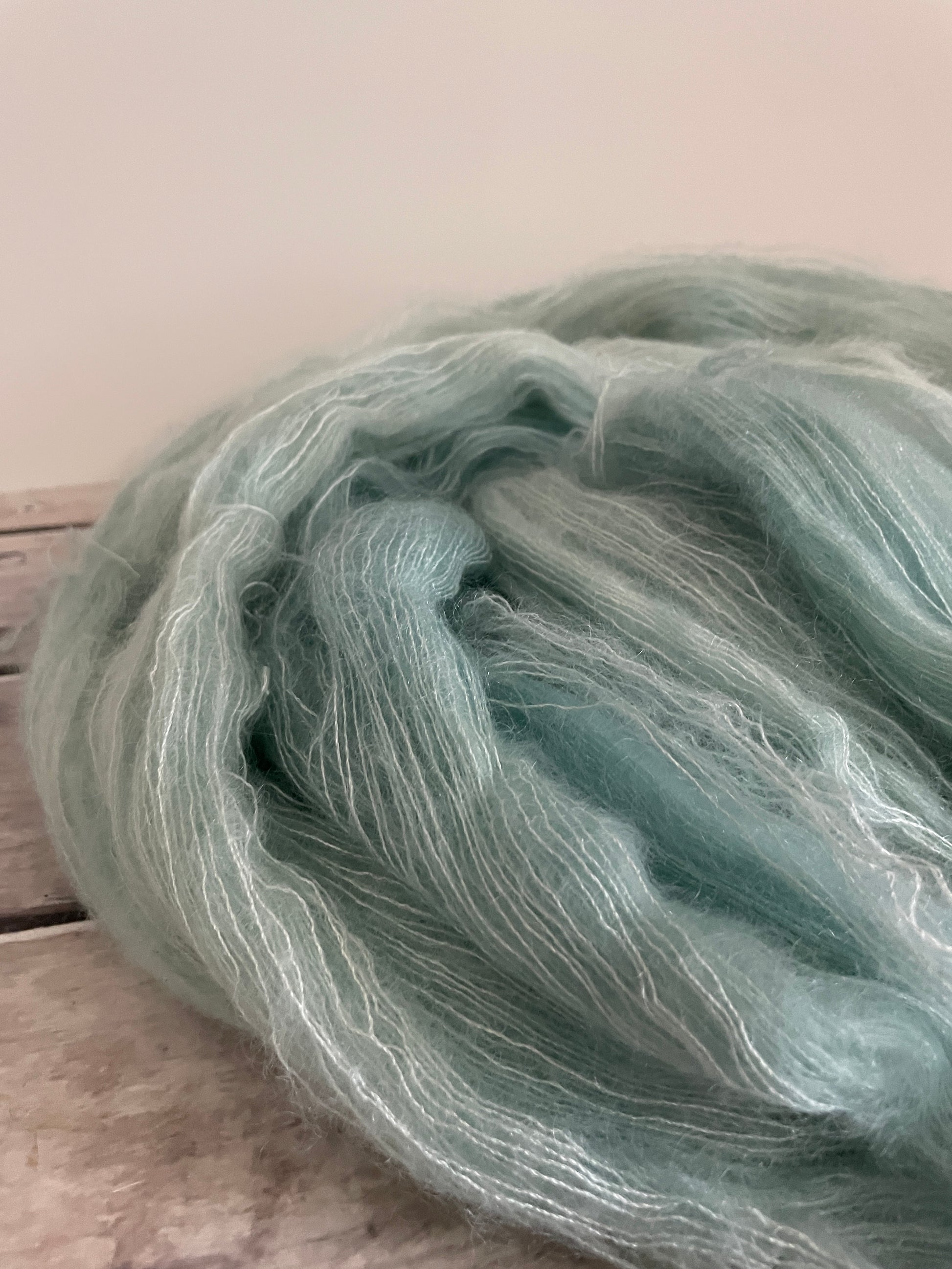 Sea Mist is a soft, airy shade of blue-green with a gentle, almost ethereal quality. Reminiscent of ocean spray drifting across the shoreline, it has a cool, refreshing tone that feels both calming and uplifting. The colour carries a whisper of silver within it, giving it a light, hazy translucence that suits its name perfectly. On this delicate, fluffy yarn base, the shade seems to glow softly, adding to its sense of lightness and flow. Sea Mist works beautifully for projects that call for a fresh, ocean-inspired palette, whether used alone or paired with deeper sea tones or sandy neutrals.