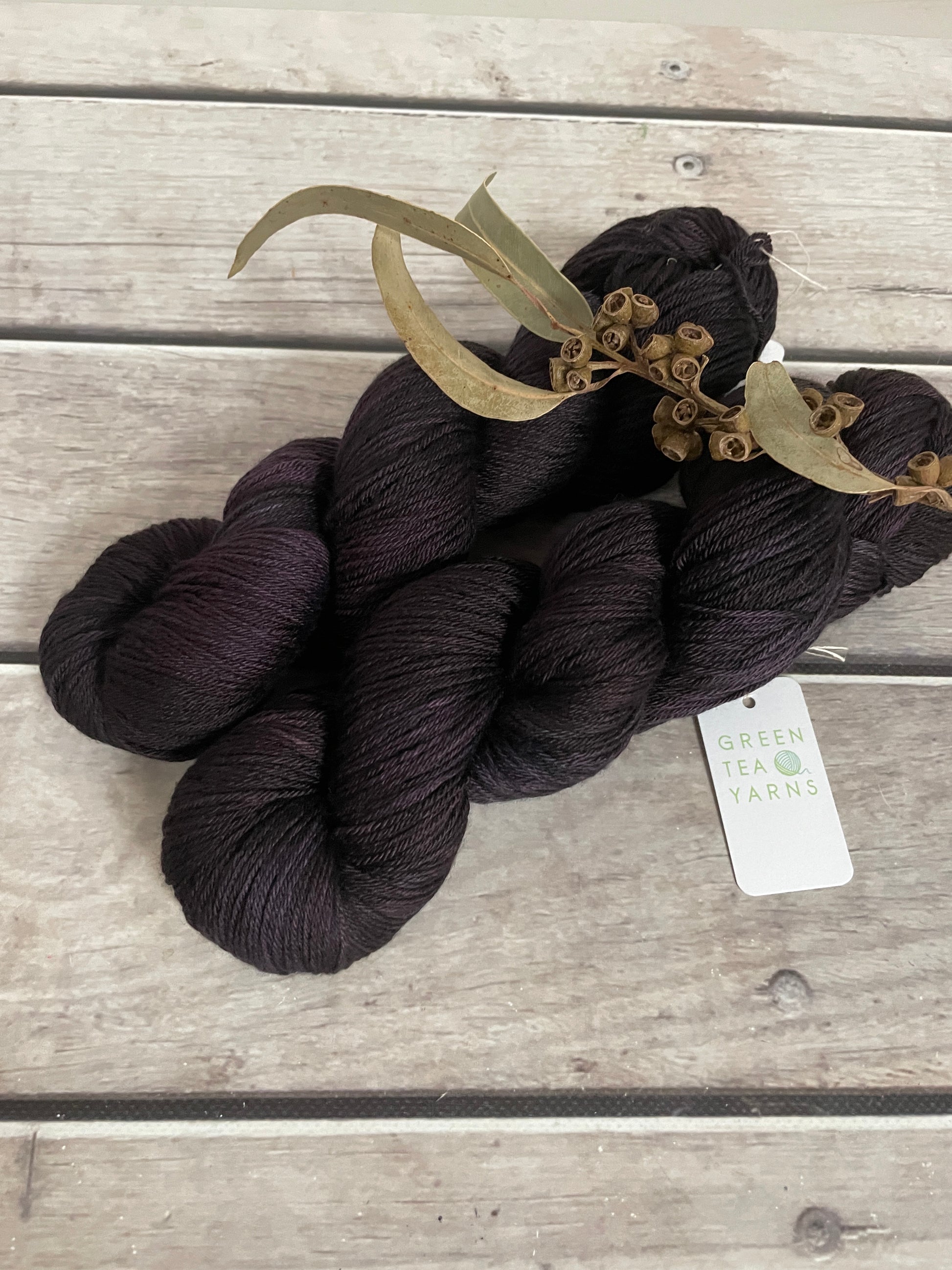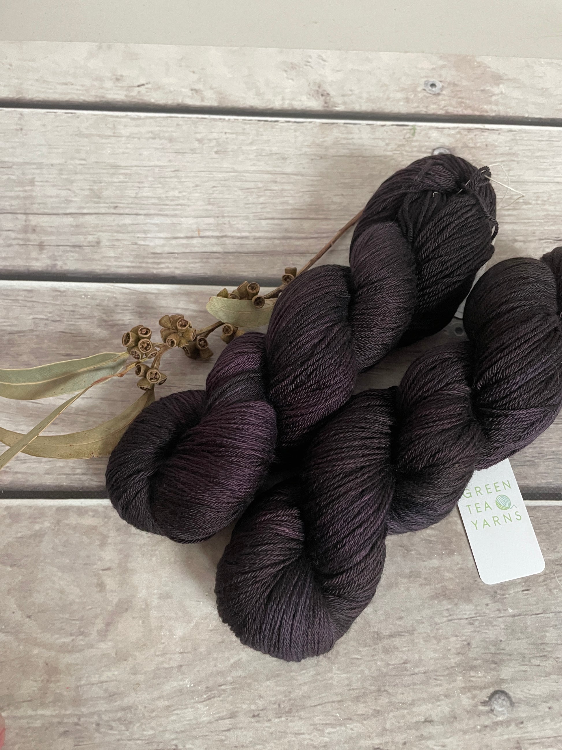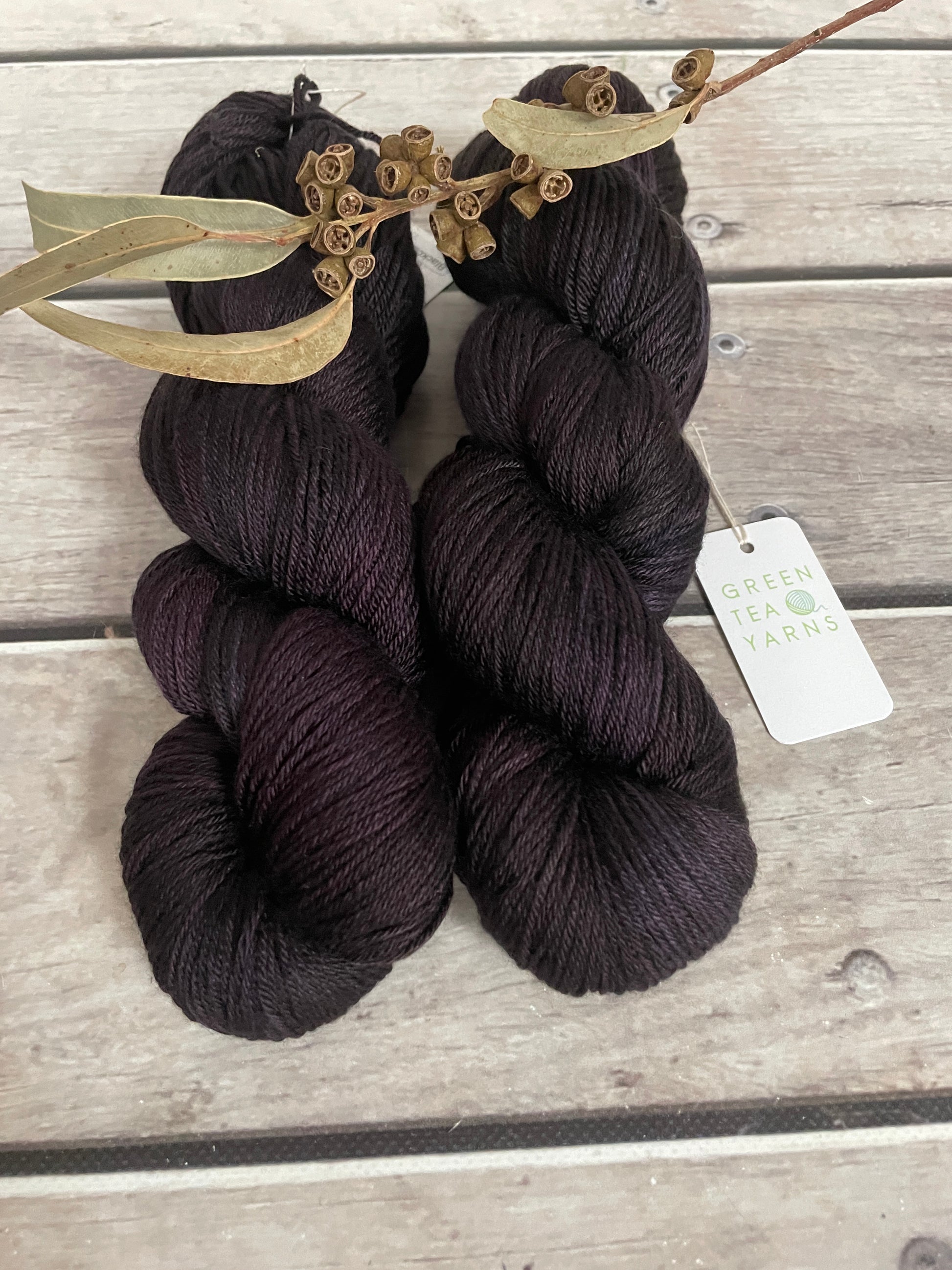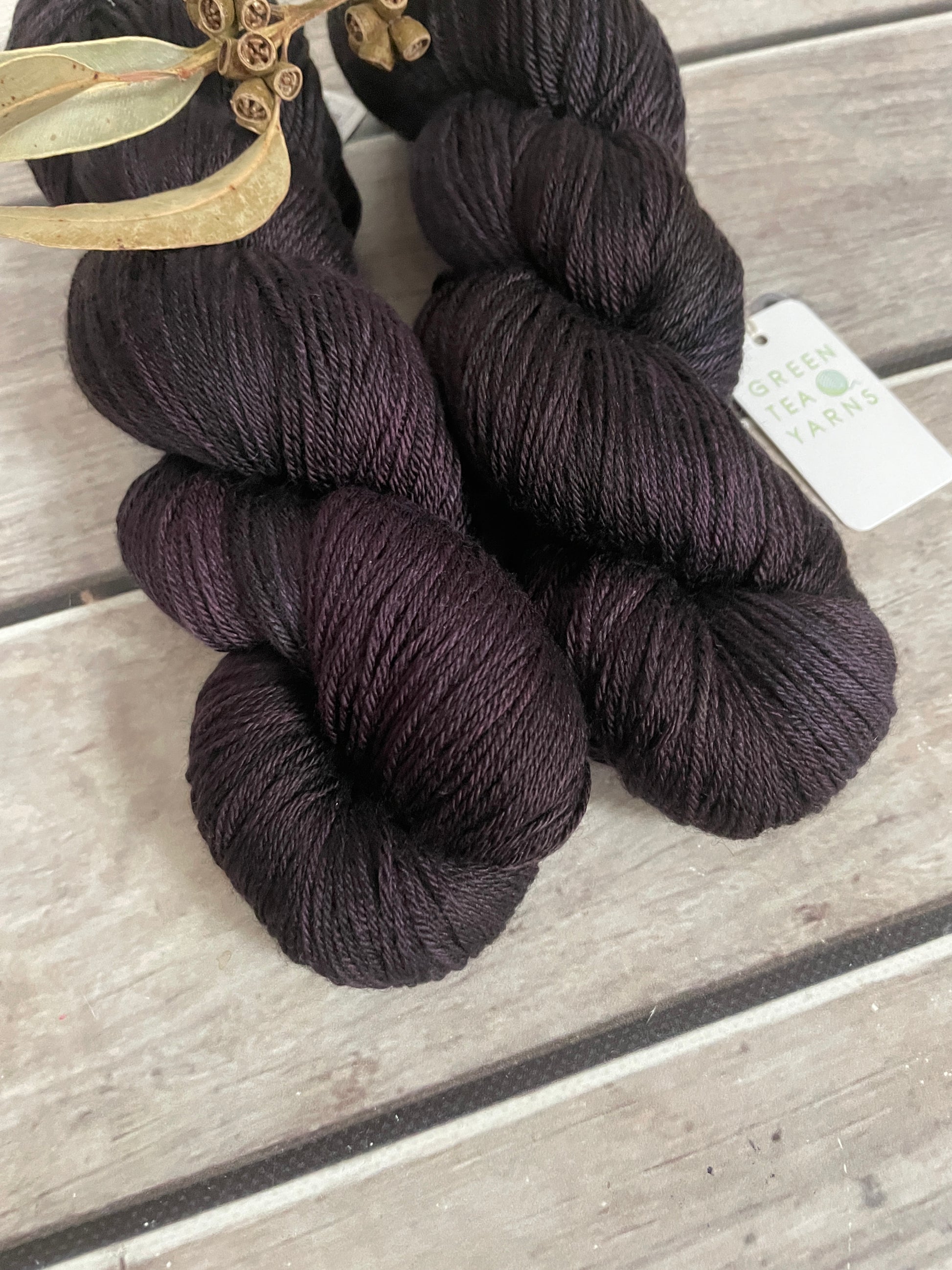 Blackcurrant is a deep, saturated purple that borders on the edge of black, yet reveals its true colour in the light. At first glance it reads as a rich, inky shade — dramatic and grounding — but look closer and you’ll see layers of dark berry, plum skin and a hint of wine-toned warmth running through the skein.