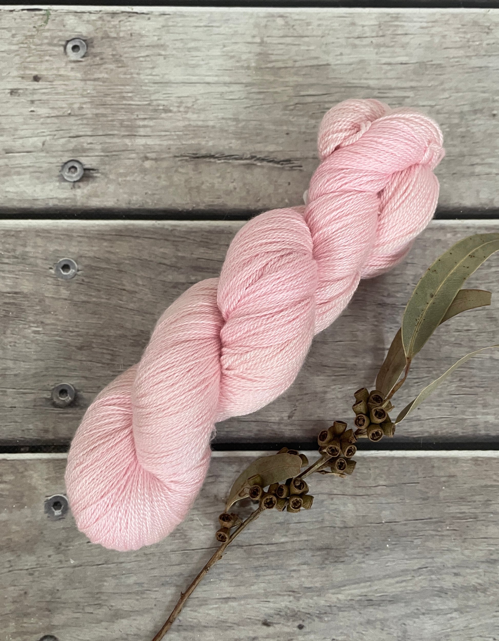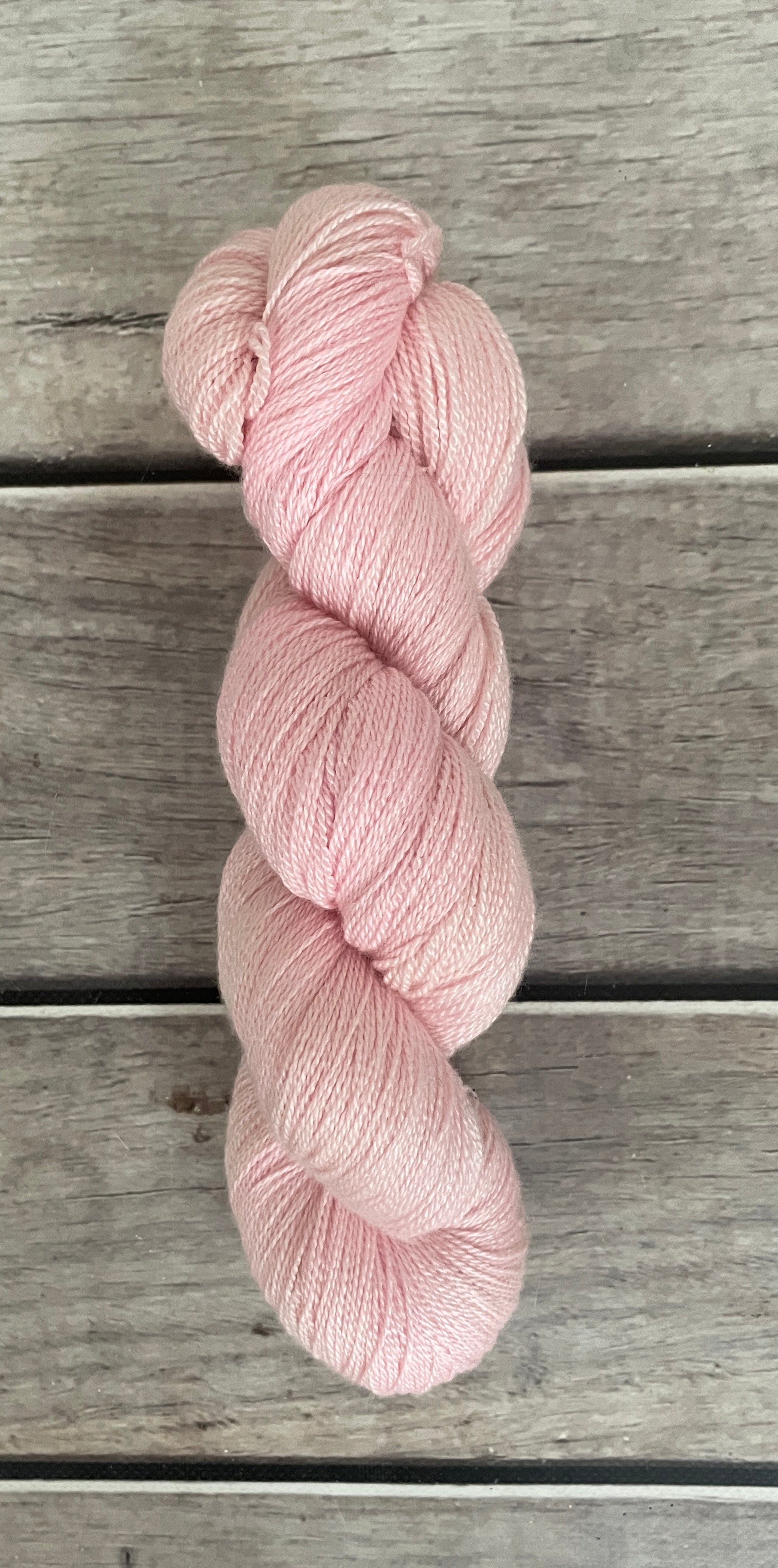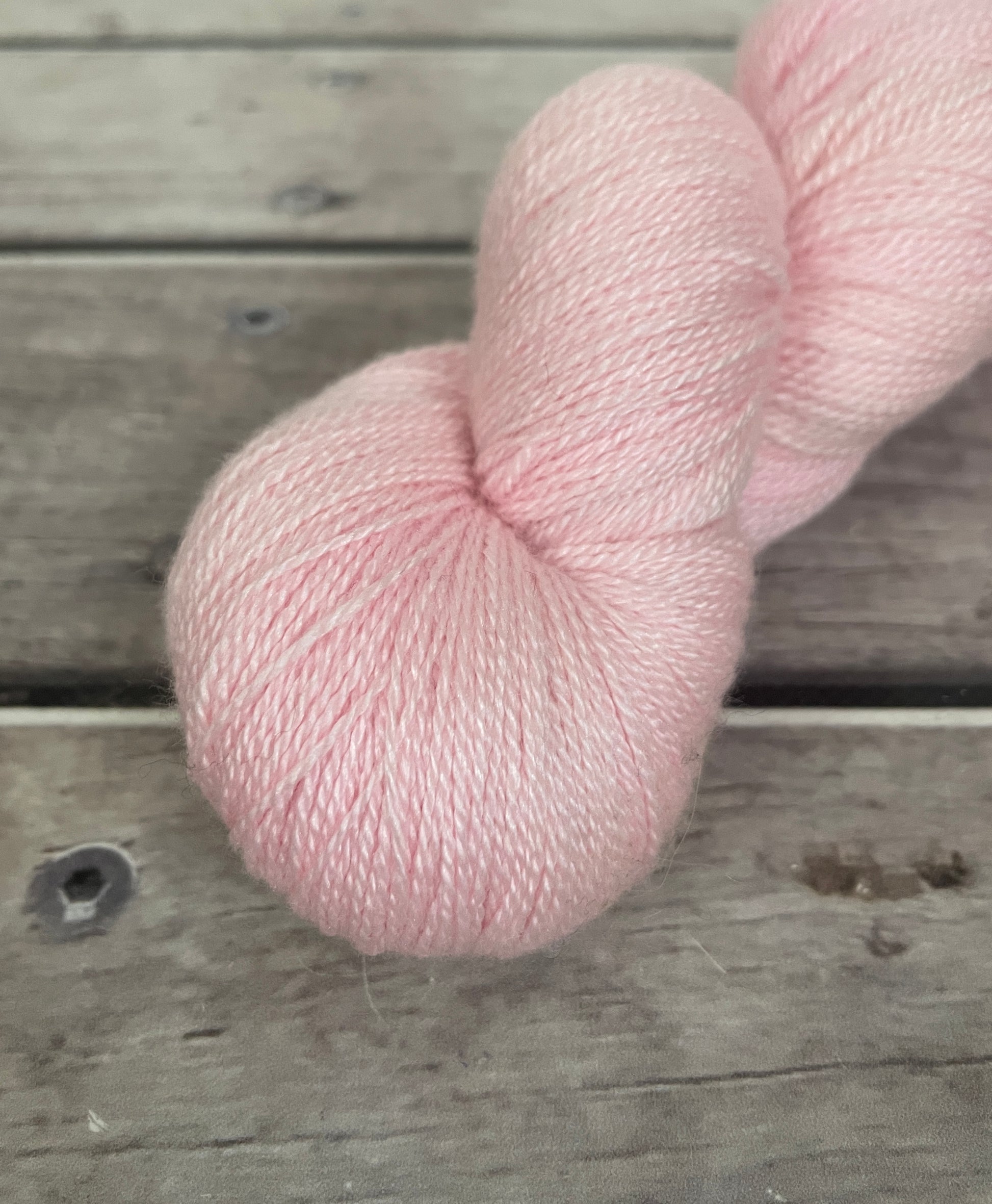 In the light, China Doll reads as airy and clean, with just enough pink to feel deliberate rather than neutral. It’s delicate but not insipid, making it a beautiful choice for garments, baby knits, or pieces where you want colour that feels calm, polished, and timeless rather than loud.