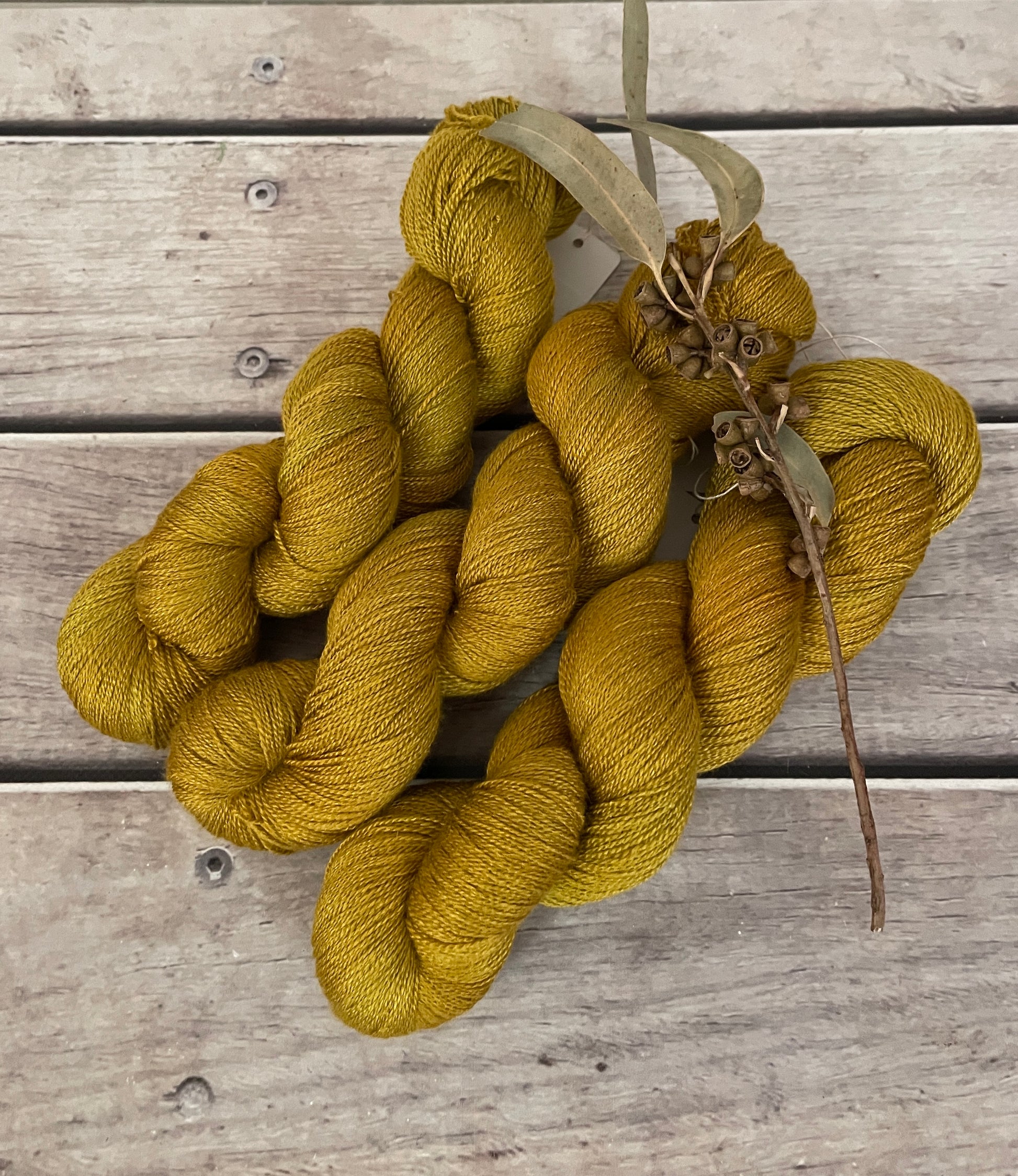 Jasmin 2 ply - 50% sw.merino and 50% silk it runs at 800 metres to 100g.
