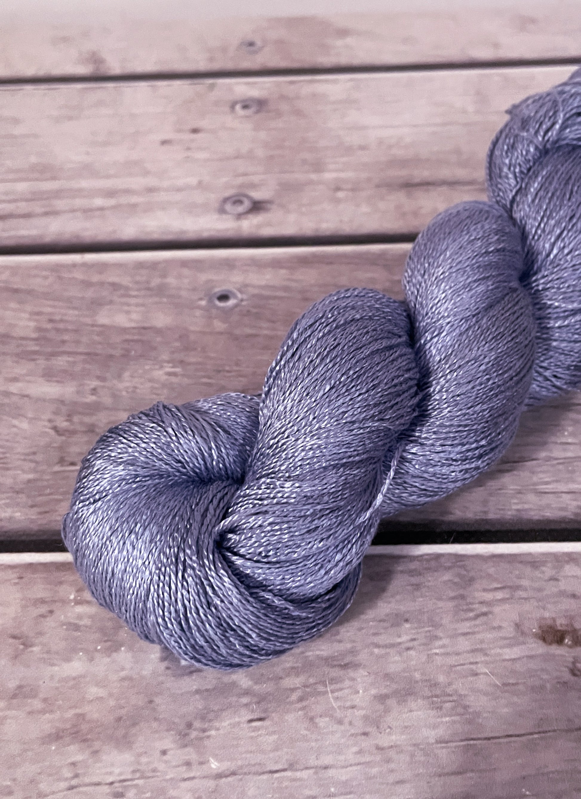 A beautifully glossy silky yarn. Just so luxurious … and a pleasure to knit with.