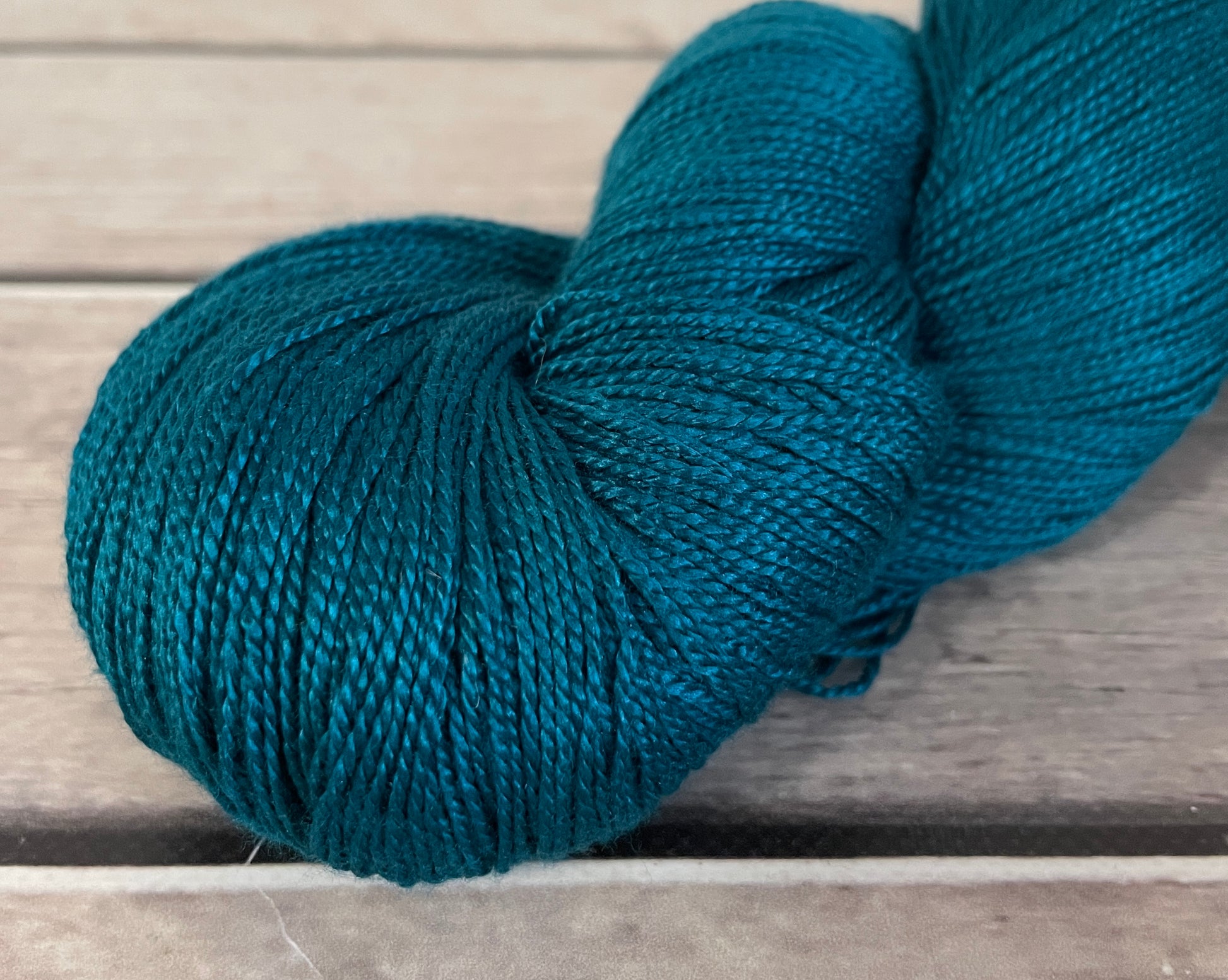Vintage Button is a deep, muted teal with rich undertones of green and blue mingling softly throughout the skein. There’s an aged elegance to it—like a treasured coat button passed down through generations—weathered but full of quiet character. The colour shifts subtly in the light, revealing occasional hints of peacock blue in its depths, yet always returning to a grounded, vintage green. This shade is neither too bright nor too dark, making it a versatile companion for earthy palettes or bolder jewel tones. Calm, classic, and full of depth—Vintage Button carries the charm of something well-loved and beautifully timeless.